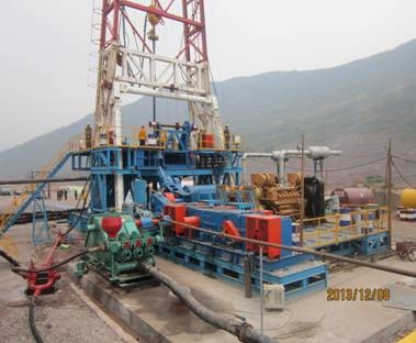 該鉆機承載部分采用了撬裝式底座平臺拼接,前臺轉(zhuǎn)盤平面高度為5.2米,后臺高度為1.5米,底座外形尺寸19580×10640。起升裝置配K型井架,其有效高度達到43米,六輪天車并配置起重修理架。JC40絞車為低位安裝全封閉式,最大輸入功率735KW,最大快繩拉力250KN,使用Φ32mm鋼絲繩。旋轉(zhuǎn)系統(tǒng)由通徑700mm的ZP-275轉(zhuǎn)盤以及SL-225的水龍頭等組成。動力部分配置了功率為588KW的PZ8V190和功率為882KW的PZ12V190B柴油機,傳動系統(tǒng)為整體鏈條并車箱。配套我公司首次自主設(shè)計制造的固控循環(huán)系統(tǒng),由4個40立方的泥漿處理罐、1個40立方的泥漿儲備罐以及振動篩、除砂器等構(gòu)成。操縱控制系統(tǒng)采取氣動控制。該設(shè)備的采購及設(shè)計標準均符合API規(guī)范。