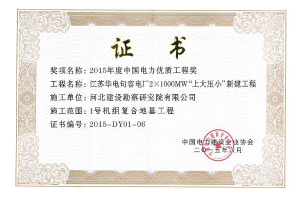 近日,我公司參建的江蘇華電句容電廠2×1000MW“上大壓小”新建工程獲得2015年度中國電力優(yōu)質(zhì)工程獎。