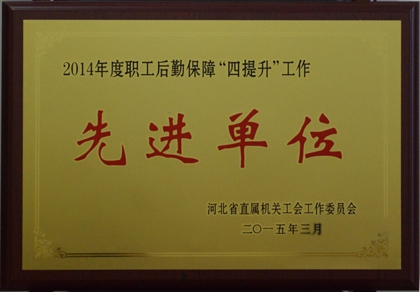 公司在2014年度職工后勤保障“四提升”活動(dòng)中,被河北省直屬機(jī)關(guān)工會(huì)工作委員會(huì)評(píng)為省直系統(tǒng)先進(jìn)單位。