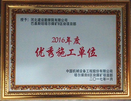 1月19日,巴基斯坦塔爾煤礦總承包方CMEC舉行2016年度優(yōu)秀集體及先進(jìn)個(gè)人表彰大會(huì),我公司疏干井項(xiàng)目部榮獲CMEC煤礦優(yōu)秀施工項(xiàng)目部稱號(hào),鄭聚印等三人及一名巴籍員工獲得優(yōu)秀先進(jìn)個(gè)人稱號(hào)。CMEC塔爾煤礦項(xiàng)目總經(jīng)理高度贊揚(yáng)了我公司不畏艱辛,排除萬難,按期完成疏干井施工工作,給下一步煤礦投產(chǎn)奠定了基礎(chǔ)。同時(shí),希望我公司繼續(xù)發(fā)揚(yáng)苦干快干的精神,如期完成疏干井排水管道的施工任務(wù)。
