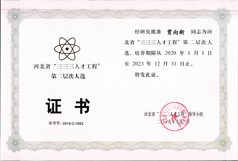 經(jīng)公司申報、石家莊市人力資源和社會保障局推薦,河北省“三三三人才工程”領導小組批準,我公司賈向新同志榮獲2019年度河北省“三三三人才工程”第二層次人選。