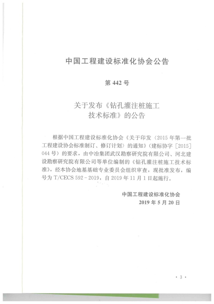 近日,我公司主編的中國(guó)工程建設(shè)標(biāo)準(zhǔn)化協(xié)會(huì)標(biāo)準(zhǔn)《鉆孔灌注樁施工技術(shù)標(biāo)準(zhǔn)》(T/CECS 592-2019)由中國(guó)建筑工業(yè)出版社正式出版發(fā)行,于2019年11月1日起實(shí)施。