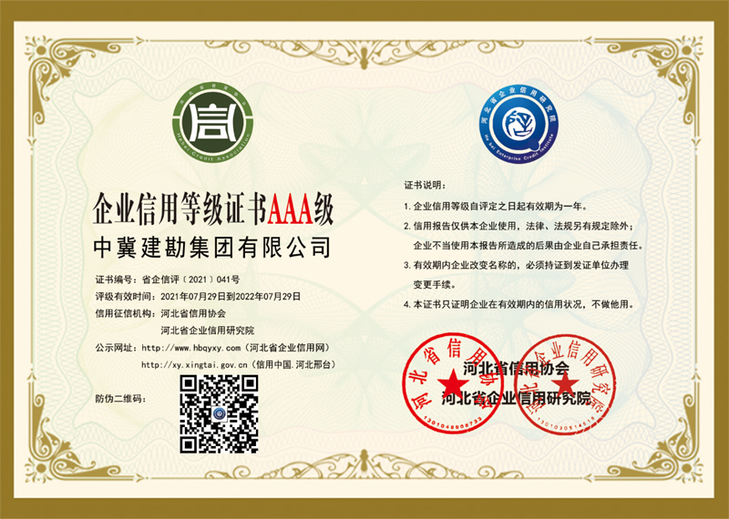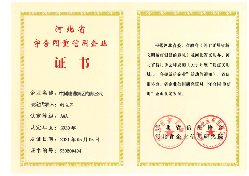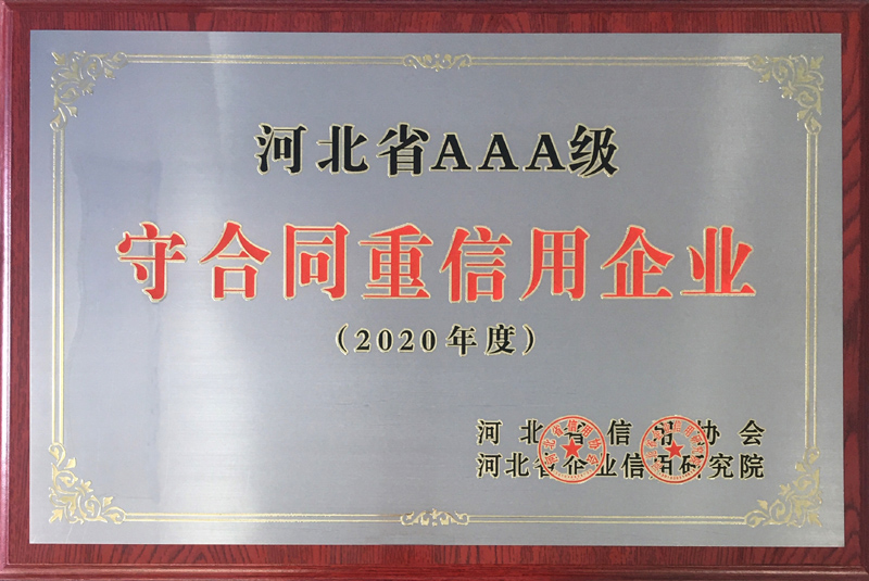 根據(jù)河北省信用辦、河北省信用協(xié)會等七部門印發(fā)的《關(guān)于開展“推進(jìn)誠信建設(shè)共建信用河北”的活動方案》的通知,河北省信用協(xié)會、河北省企業(yè)信用研究院對“守合同重信用”企業(yè)進(jìn)行認(rèn)定,我公司繼續(xù)被評定為“河北省AAA級守合同重信用企業(yè)”。