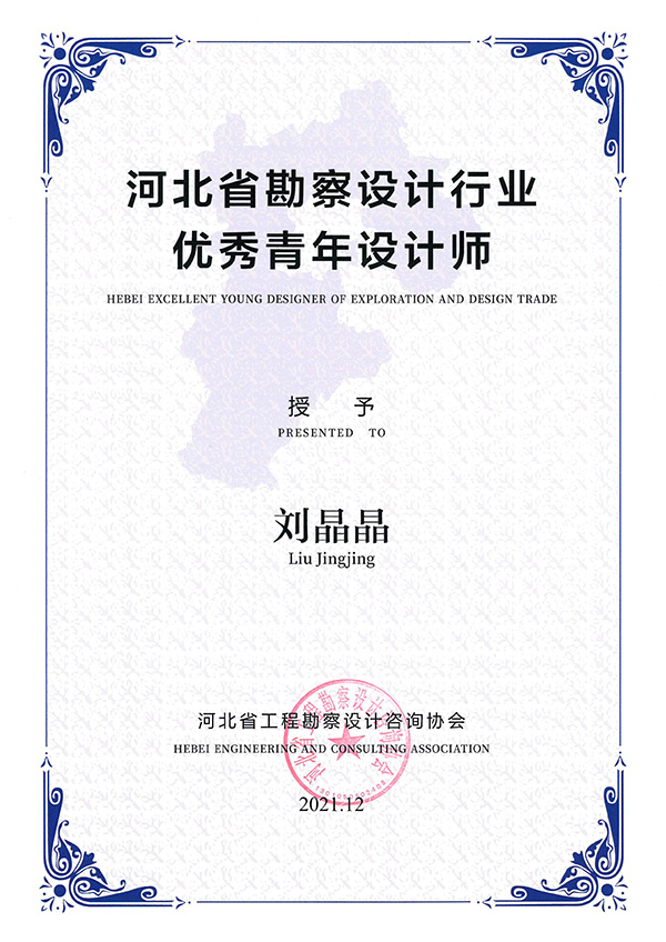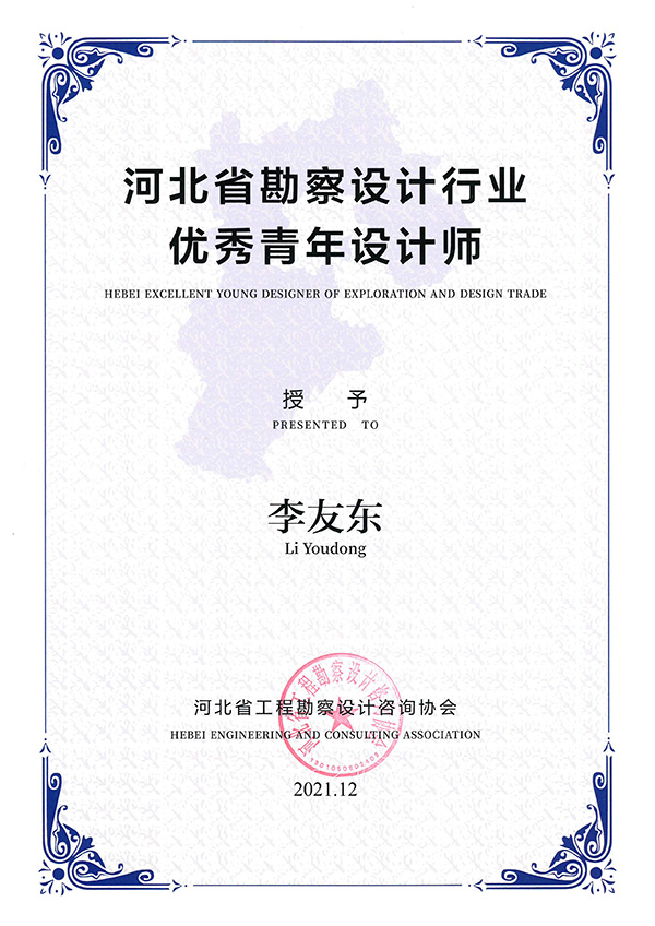 近日,公司監(jiān)事會(huì)主席李友東、副總經(jīng)理劉晶晶被河北省工程勘察設(shè)計(jì)咨詢協(xié)會(huì)授予“河北省勘察設(shè)計(jì)行業(yè)優(yōu)秀青年設(shè)計(jì)師”稱號。