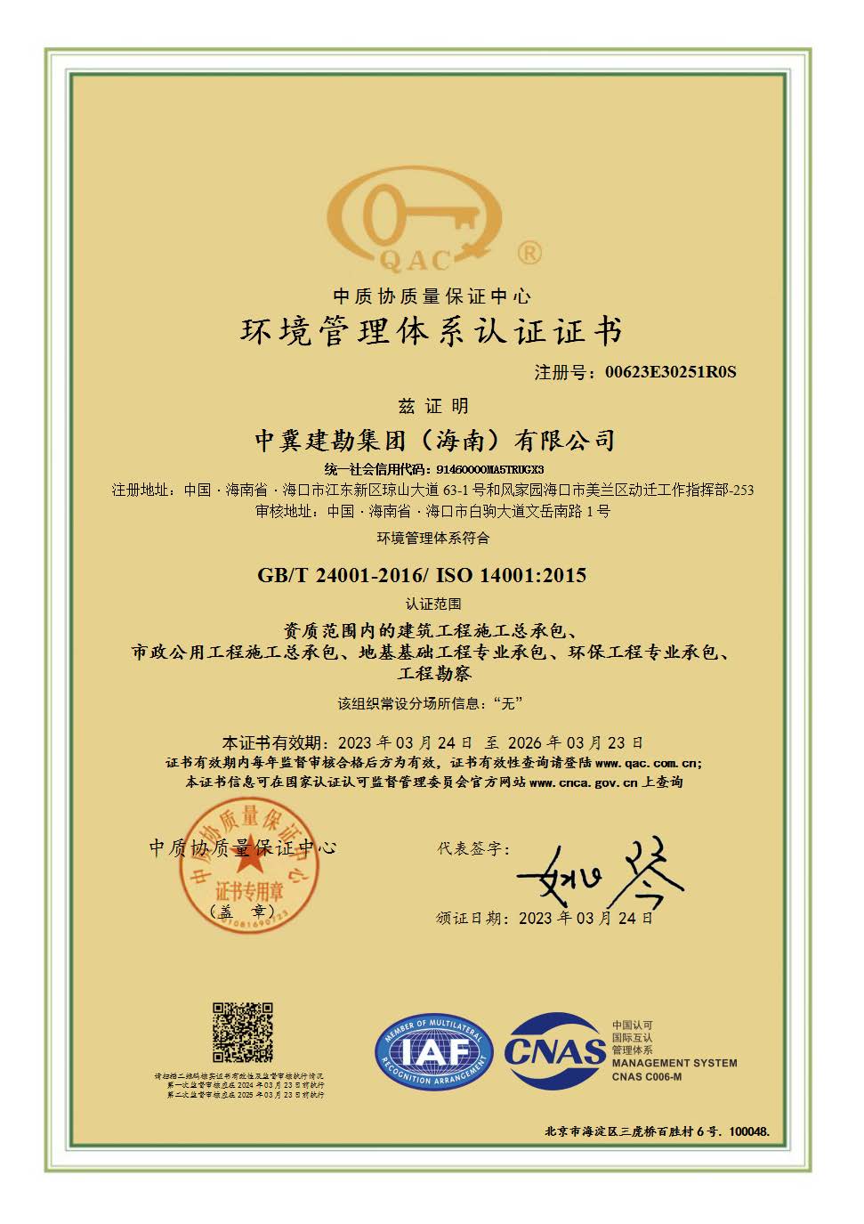 2023年3月13日至18日,經(jīng)認(rèn)證機(jī)構(gòu)現(xiàn)場(chǎng)審核,中冀建勘集團(tuán)(海南)有限公司順利通過(guò)了綜合管理體系的認(rèn)證,并于3月24日取得了中質(zhì)協(xié)質(zhì)量保證中心頒發(fā)的綜合管理體系認(rèn)證證書(shū)。