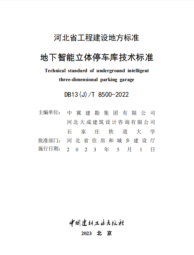 近日,我公司主編的河北省工程建設(shè)地方標(biāo)準(zhǔn)《地下智能立體停車庫技術(shù)標(biāo)準(zhǔn)》(DB13(J)/T 8500-2022)、《污染場地巖土工程勘察技術(shù)標(biāo)準(zhǔn)》(DB13(J)/T 8518-2023)由河北省住房和城鄉(xiāng)建設(shè)廳正式發(fā)布,并印刷出版發(fā)行,分別將自2023年5月1日和7月1日起實施。