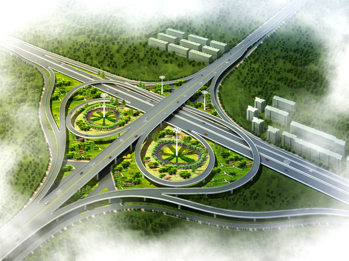 邯鄲市中華大街~南環(huán)路全互通立交橋,設(shè)計(jì)為車速60km/h,雙向八車道全互通組合式三層立交,其中南環(huán)路為第二層,上跨地面層,凈空3.5米,中華大街為第三層, 上跨南環(huán)路,凈空4.5米。右轉(zhuǎn)匝道和左轉(zhuǎn)半定向匝道設(shè)計(jì)車速40km/h,右轉(zhuǎn)匝道凈寬7米,左轉(zhuǎn)半定向匝道凈寬8米,環(huán)形匝道設(shè)計(jì)車速30km/h,凈寬7米。整座立交橋占地322畝,屬特大型城市橋梁工程,預(yù)計(jì)投資約2.49億元。