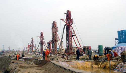 工程地點位于武漢市天興洲。施工時間2005年1月至2006年4月。引橋7#、9#、10#、11#墩,樁徑1.5m、樁長65-70m,72根,樁端嵌入弱膠結(jié)泥質(zhì)礫巖近30m,巖石強度14MPa。01#-09#φ2.5m鉆孔,樁長65-75m,95根樁端嵌入強膠結(jié)泥質(zhì)、鈣礫巖約40m,巖石強度20-60MPa,施工難度極大。