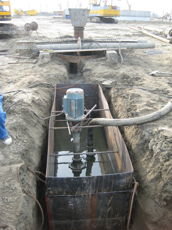 本工程自2008年8月26日開工,至2008年12月30日竣工,采用三岔雙向擠擴(kuò)后壓漿鉆孔灌注樁,砼等級(jí)C40,灌注樁樁徑1.4m,2b型地下樁長(zhǎng)為58.9m,樁數(shù)為16根;1a、1b、2a、2c型地下樁長(zhǎng)為55.3m,樁數(shù)為344根;地上樁長(zhǎng)均為1.8m,每根樁三個(gè)盤徑2.4m的承力盤,共360根樁,并完成了樁端后壓漿、鑿樁頭及地面接樁工作;振動(dòng)沉管碎石樁樁徑為0.35m,地下樁長(zhǎng)為20m,共完成2181根,碎石墊層12897 m3。