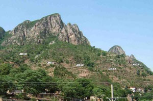 磁縣陶泉鄉(xiāng)南王莊位于冀西南群山之中。近年來,北側“道士帽”山峰下曾發(fā)生過巖石崩落,造成一處民宅被砸,威脅約20余戶居民。隨著時間的推移,在各種地質作用下,尤其是降水、凍融的影響,存在著繼續(xù)發(fā)生崩塌的隱患。為了村民的生命、財產安全,達到防災減災的目的,受磁縣國土資源局的委托,我公司進行了崩塌治理勘察工作。