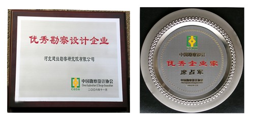 我公司喜獲中國(guó)勘察設(shè)計(jì)協(xié)會(huì)頒發(fā)的“優(yōu)秀勘察設(shè)計(jì)企業(yè)”榮譽(yù)稱號(hào),董事長(zhǎng)席占軍獲“優(yōu)秀企業(yè)家”稱號(hào)。