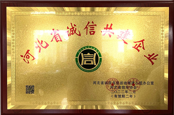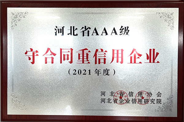根據(jù)河北省信用辦、河北省信用協(xié)會等七部門印發(fā)的《關(guān)于開展“推進誠信建設(shè)共建信用河北”的活動方案》的通知及《關(guān)于2021年度河北省“守合同重信用”企業(yè)申報認定工作的通知》,我公司被評為“河北省誠信共建企業(yè)”和“河北省AAA級守合同重信用企業(yè)”。